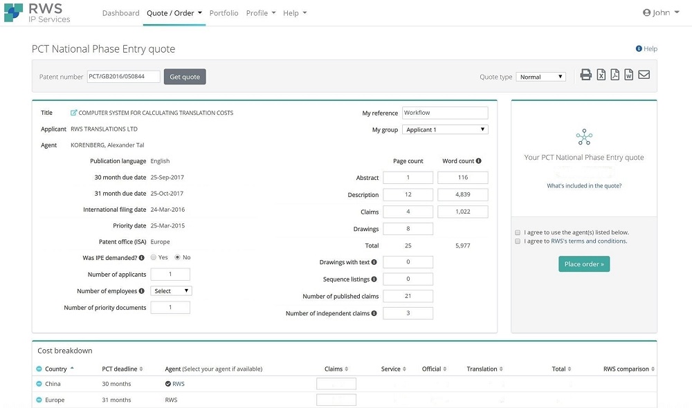 Independientemente de que seas una sola persona, un bufete de abogados o una corporación, con una o miles de patentes, nuestra plataforma de tramitación en el extranjero aumenta la eficiencia, te permite ahorrar dinero y te garantiza que cumplas con todos los plazos importantes de tramitación en el país. Si ya trabajas con representantes, RWS puede integrar sus servicios.