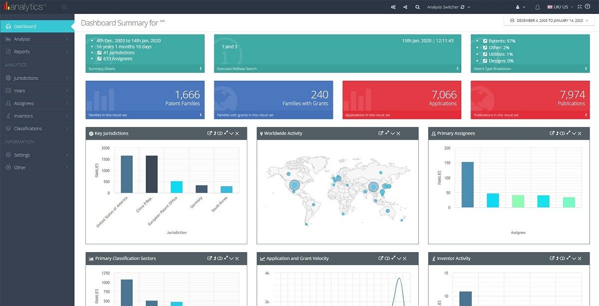 2003年に優れた国際特許データベースとしてリリースされたPatBaseは、世界中の50,000人を超えるユーザーに利用されています。英語、日本語、中国語で提供されている使いやすいインターフェイスを通じて、1億900万件以上の特許および関連文書にアクセス可能です。